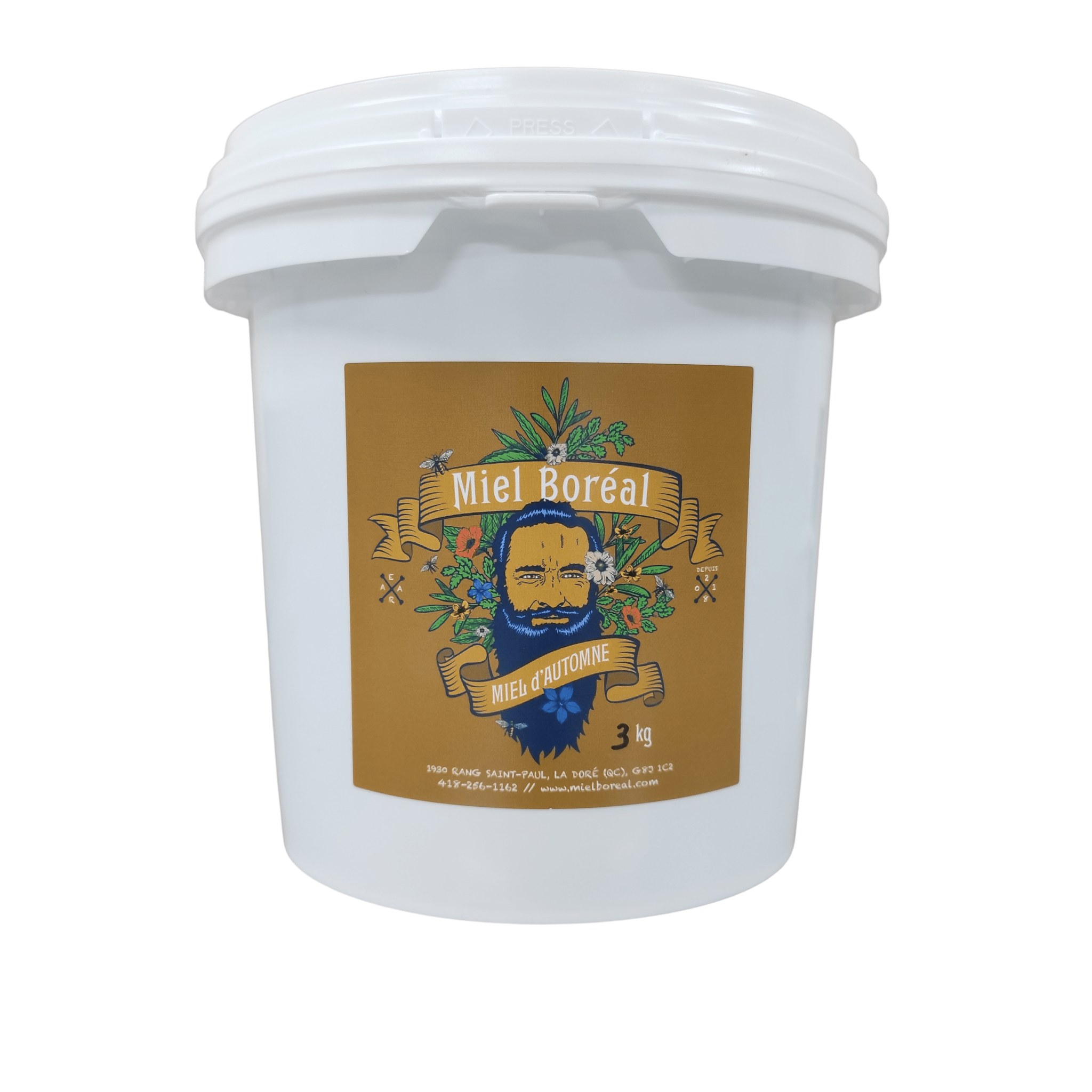 Le Miel Boréal d’automne 3kg est un miel brut de sarrasin.