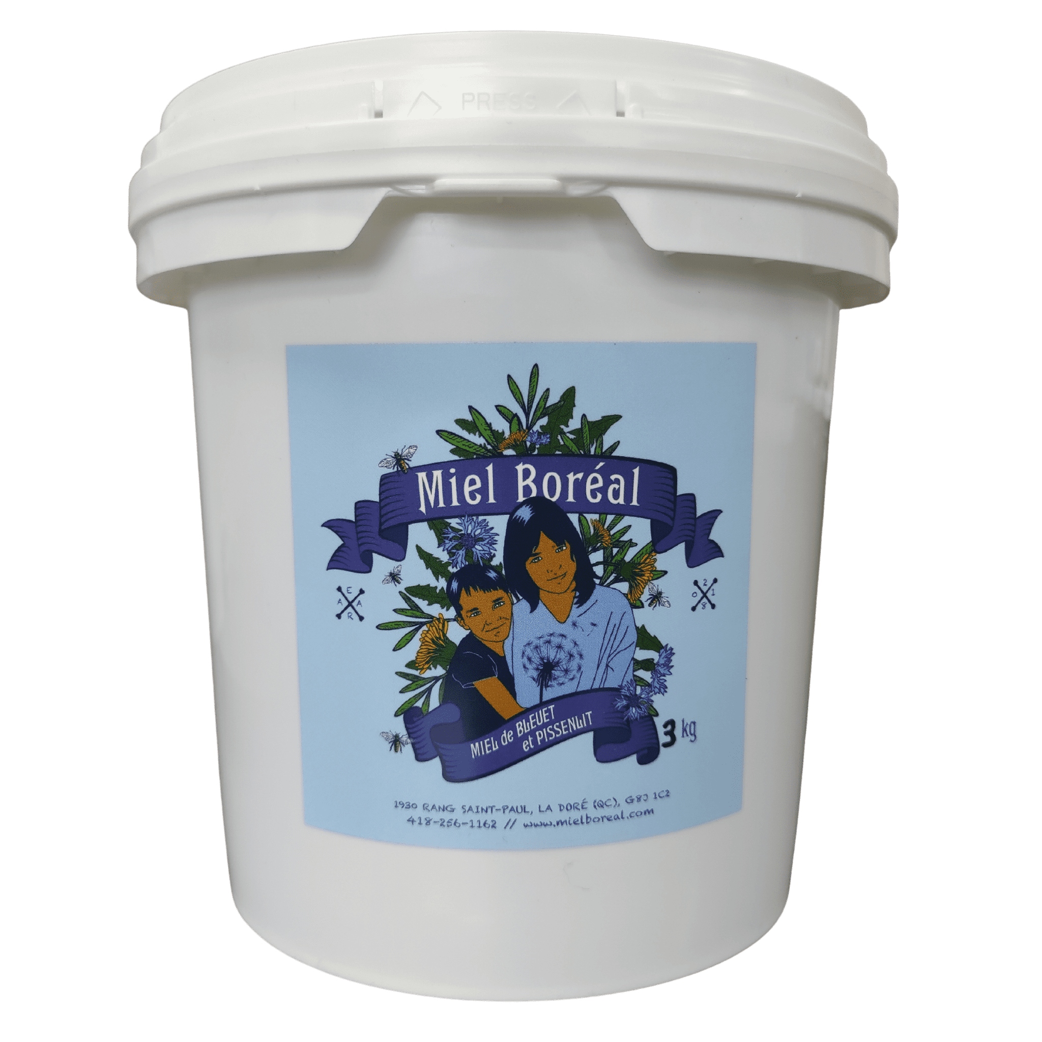 Pour conserver toutes les qualités d’origine de ce miel naturel provenant exclusivement de nos ruchers de La Doré ( Saguenay-Lac-Saint-Jean, Québec, Canada ), celui-ci est extrait à froid, il est non filtré, et non pasteurisé.